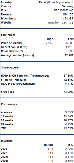 Target-Price: 88,67EURKAUFEN:Vorläufiges Jahresergebnis 2023/2024 zum 28. Februar 2024HORNBACH Holding AG & ...