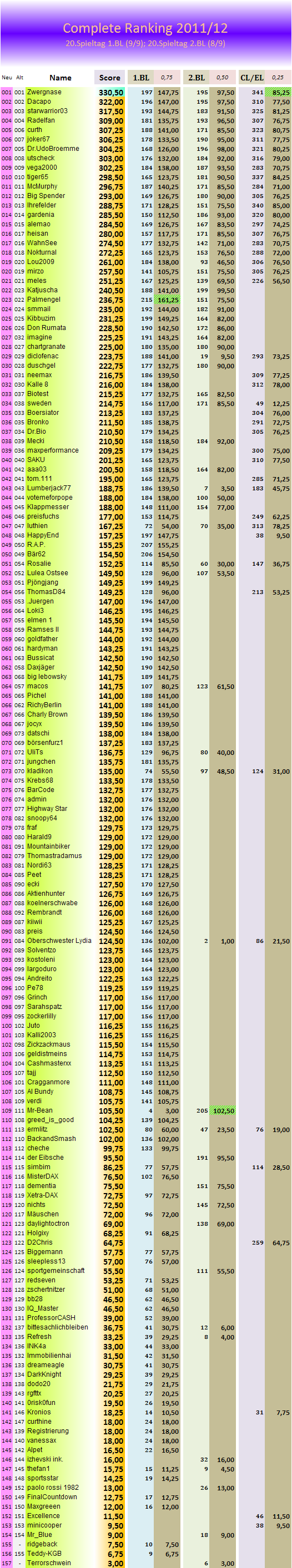 ENDAUSWERTUNG -Spieltag 20- Info CompleteRanking