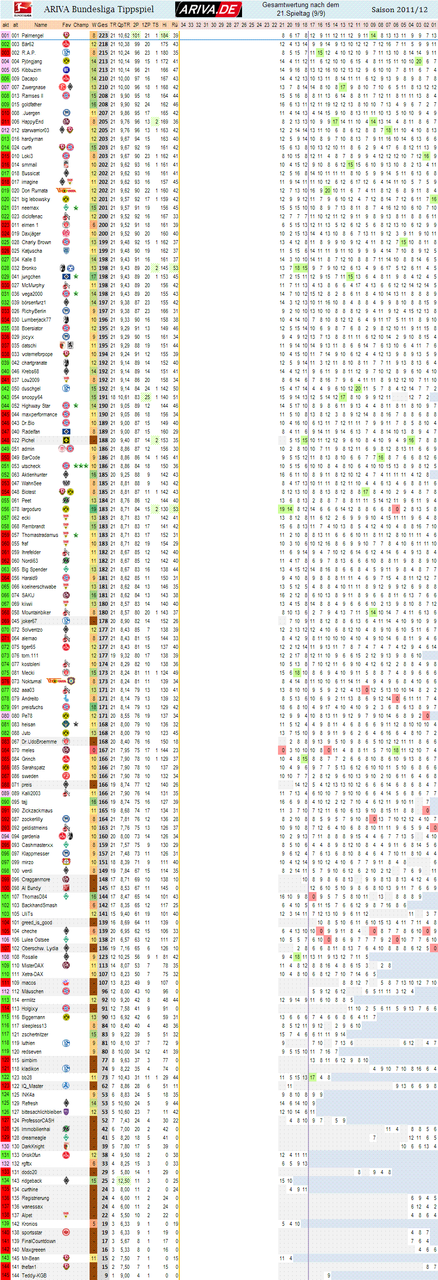 Gesamtübersicht: Gesamtwertung nach dem 21.Spieltag