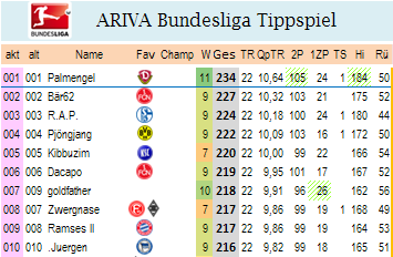 alle die an diesem Spieltag 14, 15, 16 Punkte erspielt haben machen große Sprünge in der Gesamtwertung...
