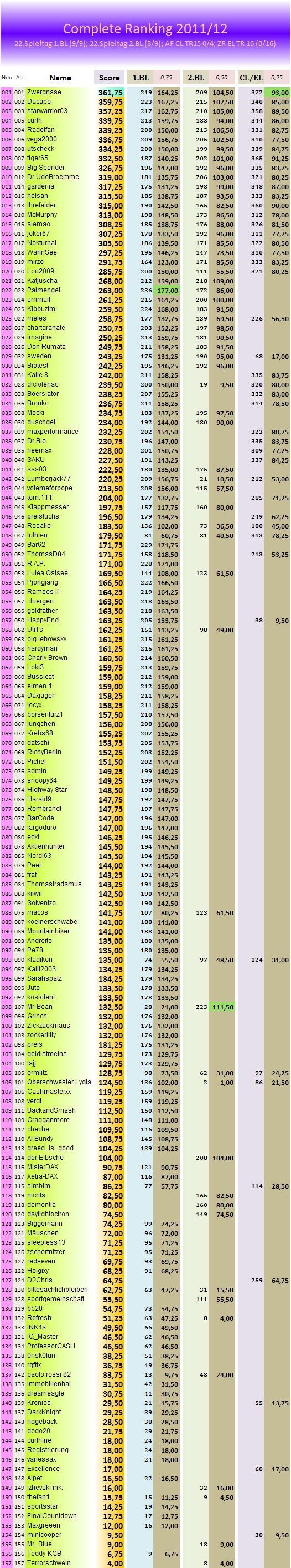 beste Rückrunde immer noch das Duo Bronko & largoduro.. beide jeweils mit 66 Punkten bisher in der Rückrunde..