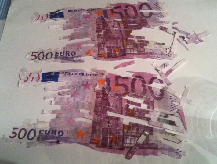 Der 500 Euro Schein wiegt ungefähr 1,1g.