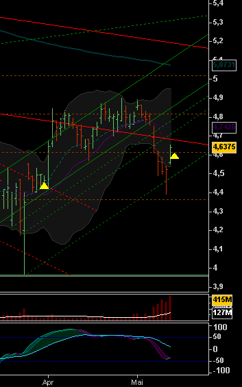 Vom Chartbild her sollte man unter Berücksichtigung dieser Nachricht eine Bodenbildung erwarten mit jetzt zügigem Anstieg in den Bereich von 6,- €: