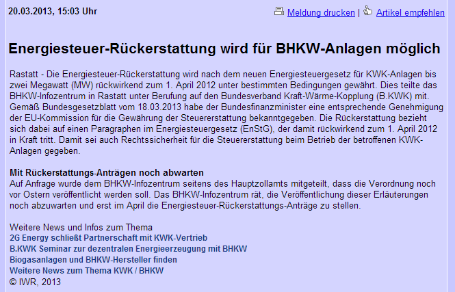 Heek, 3. Mai 2013 - Im Geschäftsjahr 2012 hat die 2G Energy AG (ISIN