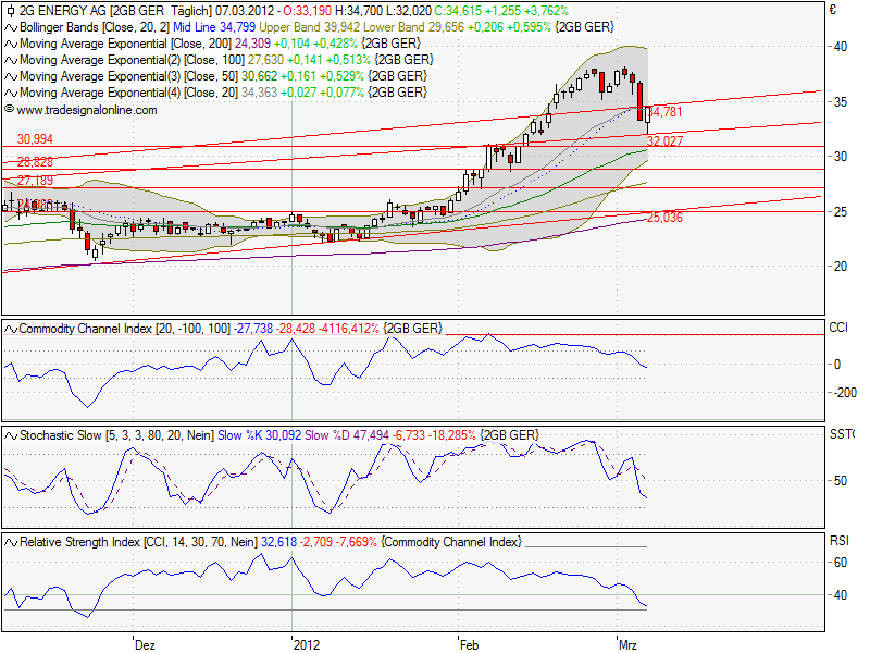 2G hat Gestern stark abgegeben und heute den Aufwärstrend wieder getestet sowie den mBB. Nun gilt es abzuwarten ob die Aktie über den mBB kommt bzw. ob die Korrektur, die nach einer gewaltigen Performance in den letzten Wochen aussteht, eintritt.