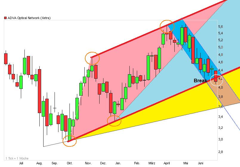 In den letzten Tagen hat sich die Aktie von Adva nach einem Tief bei 4,20 Euro zwar wieder etwas stabilisiert, aber diese Bewegung ist bisher nur eine Konsolidierung im Abwärtstrend. Ein Rückfall unter 4,20 Euro würde eine weitere Abwärtsbewegung einleiten. Ziel wäre dann ca. 3,60 Euro auslösen. Ein Anstieg über 4,45 Euro würde das Chartbild aber kurzfristig aufhellen.