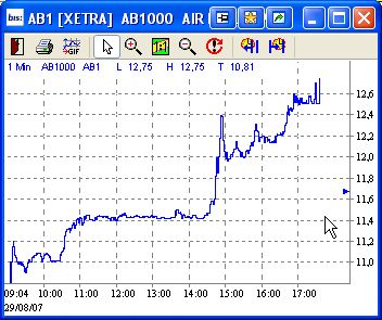 Heute morgen dann die Hiobsbotschaft von der nun heute Nachmittag nichts mehr zu hören ist und dafür ein unglaubliches Plus bei AirBerlin steht. Frei nach dem Motto "Was interessiert mich mein Geschätz von vor x Stunden...".