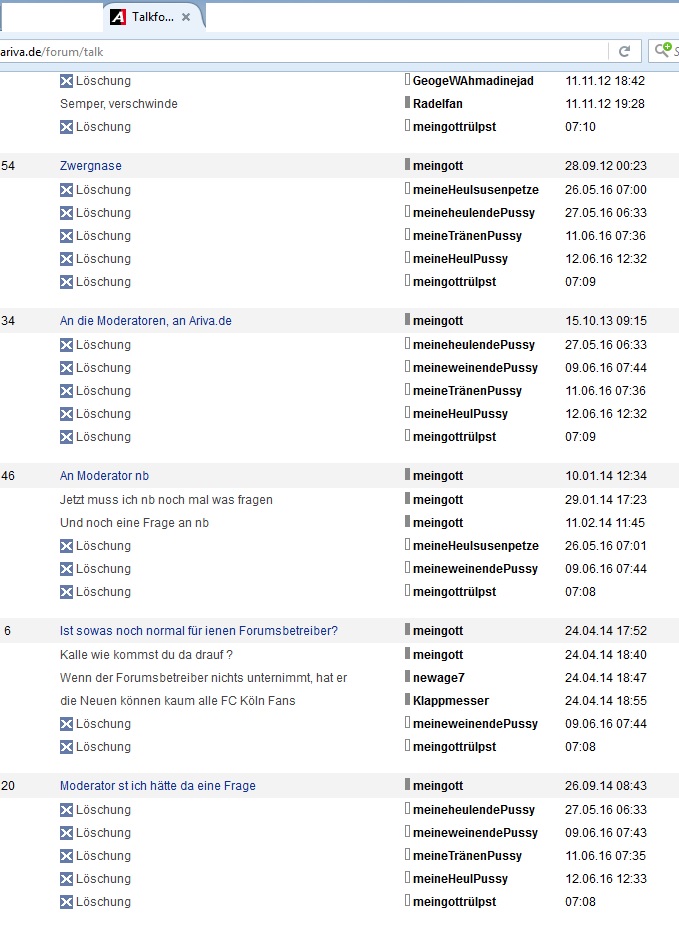 Zwar kann Ariva den aus einem Gedicht von 1917 entnommenen, von den Nazis als Parole verwendeten, hier in einen Usernamen umgemünzten Aufruf "Deutschland erwache" anscheinend nach freiem Ermessen und ohne stichhaltige Begründung aus dem Forum entfernen.
