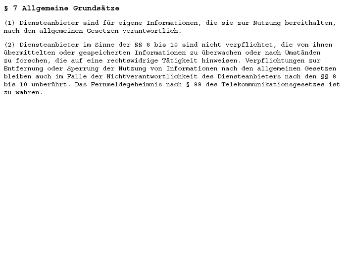 Das TeleMEDIENgesetz muss beachtet werden, nurmalso verwechselt dies aber offensichtlich mit dem TeleKOMMUNIKATIONSgesetz, welches aber nur für TelekommunikationsDIENSTE (sprich: ANBIETER) gilt, was ja aber Ariva nicht ist !!! ;)