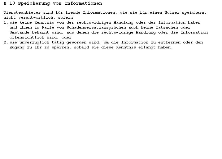 AN, wegen YAHOO: guter Hinweis. Die verhalten sich absolut korrekt und haben sich in ihren Geschäftsbedingungen weitgehend abgesichert. Sie verweisen übrigens auch auf das Telemediengesetz, insbesondere ihre Pflichten zur Vorratsdatenspeicherung. Und denen ist auch bekannt, dass sie als Diensteanbieter in bestimmten Fällen sogar schadenersatzpflichtig werden können. Liegt möglicherweise daran, dass sie eine eigene Rechtsabteilung haben und nicht nur studentische Hilfskräfte.