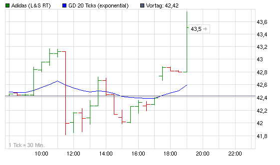 Hatte gestern meinen Banker noch beim einkaufen gesehen undein bisschen über Aktien geplaudert, der meinte, das Adidas mit der Wm noch die 50 € Marke knacken wird.