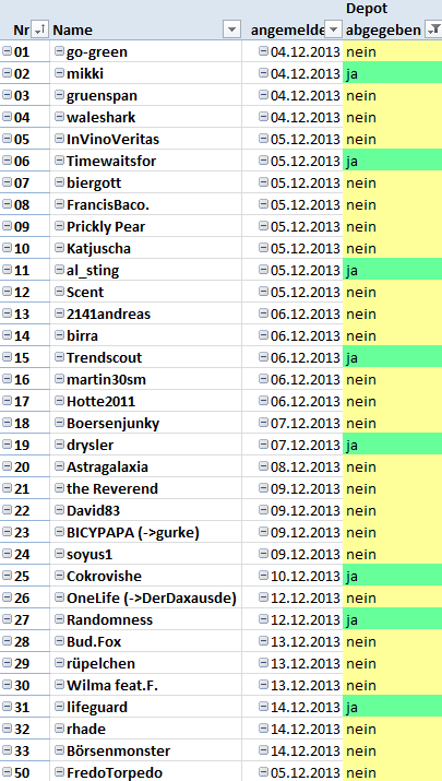 Fredo, ich würde auch wieder gerne mitmachen. Werte folgen noch....