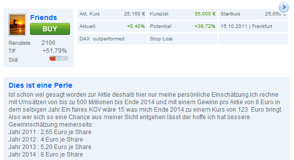 Das steht bisher nur bei Hot Stocks, und ich glaube, die haben keinerlei Gespräche mit der Unternehmensleitung geführt. Im Halbjahresbericht war man ja keineswegs so hysterisch.