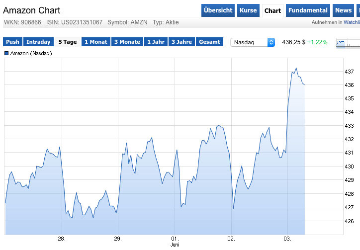 Das Kursplus ist auf das Cloud Geschäft zurück zu führen , mit dem Amazon einige Investoren gewaltig überrascht hat....