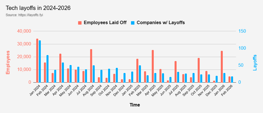 Block, ein im S&P 500 gelistetes Unternehmen, gab bekannt, dass die Entlassungen im Bereich KI die Mitarbeiterzahl von über 10.000 auf knapp 6.000 reduzieren werden. „Ich glaube, dass die meisten Unternehmen innerhalb des nächsten Jahres zu demselben Schluss kommen und ähnliche strukturelle Veränderungen vornehmen werden“, schrieb CEO Jack Dorsey. „Ich ziehe es vor, diesen Weg ehrlich und aus eigenem Antrieb zu gehen, anstatt reaktiv dazu gezwungen zu werden.“