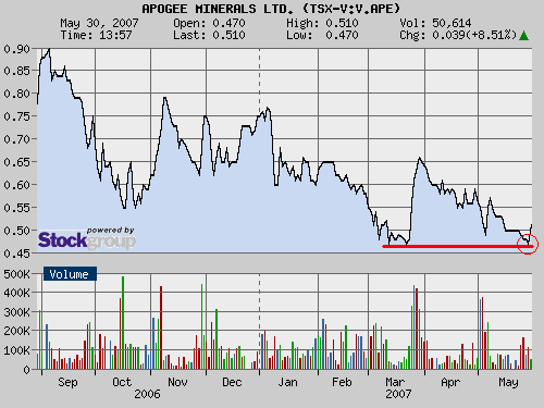 Es ist einfach unglaublich wie irrational APE gehandelt wird. Apex Silver litt ebenfalls unter´m Image eine Silberaktie aus Bolivien zu sein. Nun ist der Knoten geplatzt: