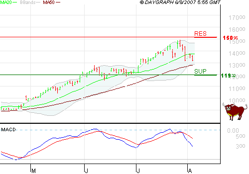 Aber im Ernst. Niemand weiß derzeit wo die Reise hingeht. Dow fällt unter 13.000, Dax auf 7.250.