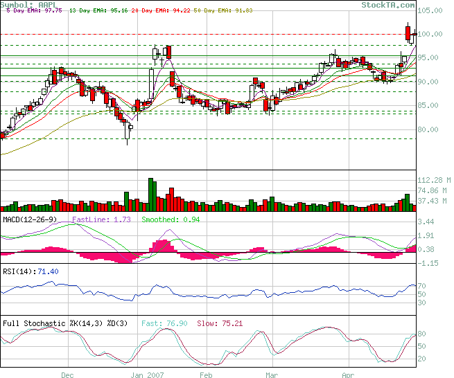 Analysten von AmTech Research sehen enormes Kurspotenzial bei dem PC-Hersteller Apple. (Nachrichten/Aktienkurs) Der Konzern mit dem Apfel-Firmenlogo könne an der Börse bis zu 145 Dollar pro Aktie wert sein, gegenüber aktuell 91,43 Dollar, so die Analysten. Zuvor sahen sie das Kursziel noch bei 118 Dollar. Mehrere Gründe deuteten laut den Analysten auf gute Geschäfte hin. So sei ein Rabatt für Mobilfunkbetreiber angedacht, die ihren Kunden das Apple iPhone anbieten möchten. Der Rabatt von 50-150 Dollar pro iPhone könnte die Absatzzahlen des Geräts stark anheben. Apple könne außerdem „ein Vermögen“ an jedem Kunden verdienen, der das iPhone direkt bei Apple verdiene. In Europa werde Apple beim iPhone vermutlich mit Vodafone zusammenarbeiten.