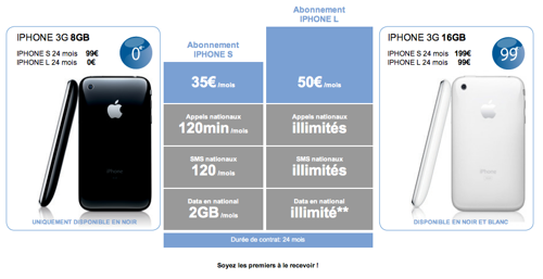 Patrick nous signale que l'iPhone est maintenant à 0 € au luxembourg chez les deux opérateur proposant officiellement le téléphone d'Apple, soit Vox et Luxgsm. Bien entendu, il faudra souscrire au forfait le plus élevé pour pouvoir profiter de ce prix d'achat sur l'iPhone 8 Go, mais il fallait le signaler pour que cela donne des idées aux autres opérateurs européens... d'autant que Vox est une filiale d'Orange.