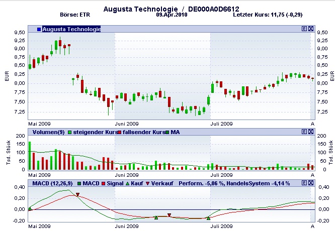 Aktien mit sehr hoher Dividende verlieren hinterher oftmals mehr als den Dividendenabschlag, anscheinend weil sie für den Markt dann uninteressant geworden sind. Das hab ich bei dividendenstarken Titeln unter den Nebenwerten oft beobachtet. Z.B. gings mir letztes Jahr so mit Augusta, siehe Bild unten: am 18. Mai wurden 1,20 Euro Dividende ausgeschüttet, der Kurs korrigiert entsprechend von ca. 9,10 auf 8,10 Euro. Sagenhafte Dividendenrendite!! Aber: im weiteren Verlauf fällt der Kurs weiter, erst Ende Juli war man überhaupt wieder auf den Stand des Dividendenabschlags zurückgekehrt (wohlgemerkt hatte man von der Dividende aber Steuern abgeführt).
