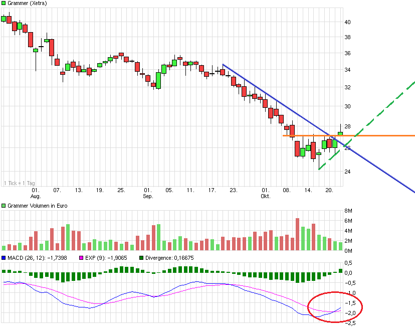 mau und heute wird die 38 Tage Linie wird durchbrochen . Ziel: EUro 28,6 - 29
