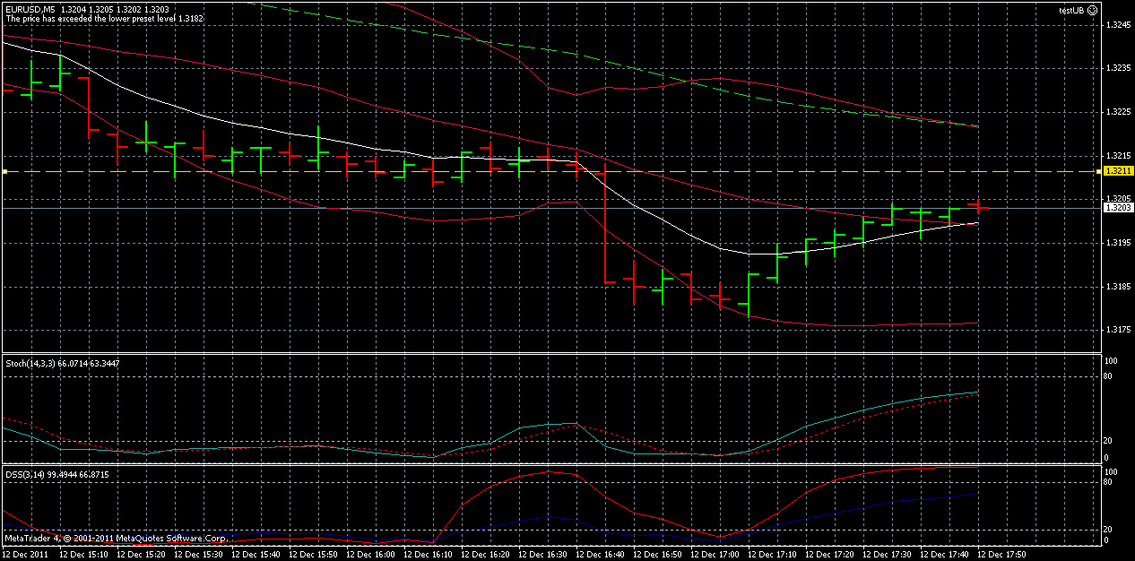 Ich habe nach wie vor keine gute Lösung für den SL im EURUSD gefunden... hier sieht man, wie wichtig es wäre. Mittlerweile wäre man knappe 20 Pips im Plus (statt 6 im Minus). Und kein Ende in Sicht, da oBB und Stochastik noch Luft lassen.