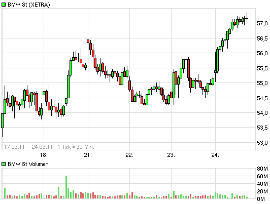 Der Kurs ist stark angestiegen und liegt - verglichen mit anderen Aktien - doch schon sehr hoch: Potential nach oben dürfte kaum noch ´drin sein: BMW selbst sieht für die 2. Jahreshälfte 2011 geringe Aussichten für eine Zunahme der Autoverkäufe, die bei BMW weit überwiegend (nur) auf PKWs basieren. Das kann für 2011 ein Nachteil werden.