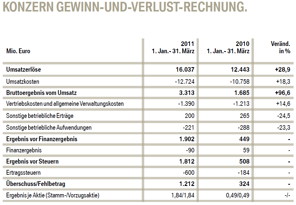 Im gleichen Zeitraum (01.04.2010 - 31.3.2011) hat BMW ein Reingewinn von ungefähr 4 Milliarde Euro erziehlt.