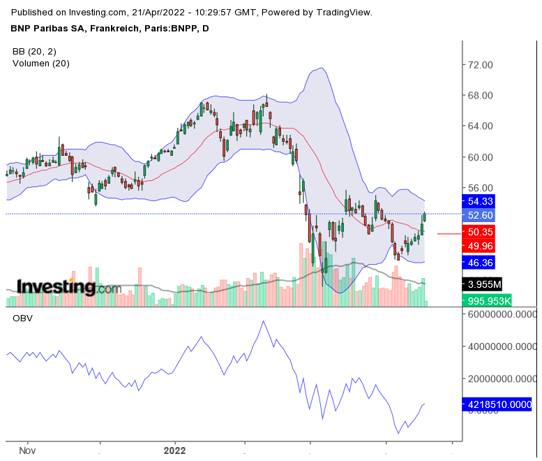 Die BNP zählt mit einem Börsenwert von etwas mehr als 90 Milliarden Euro zu den wertvollsten Banken Europas. Der Kurs zog in diesem Jahr im Einklang mit dem Branchenindex Stoxx 600 Banks um 35 Prozent an.