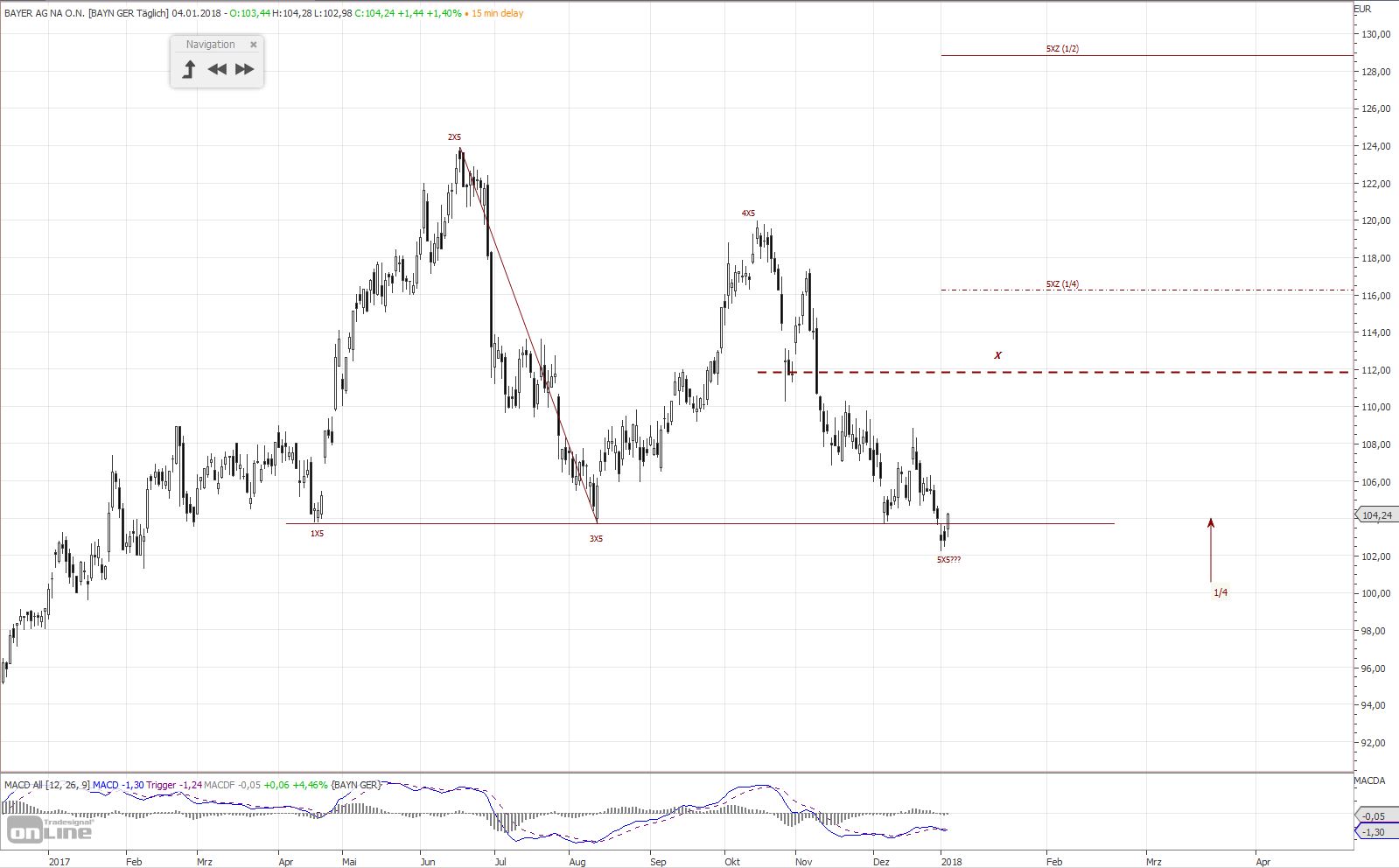 Aus dem 5X Muster, was seit April 2017 aufgebaut wird, währe ca. 129€ nächstes Kursziel aus der Projektion. Zeitraum? 4-6 Monate?