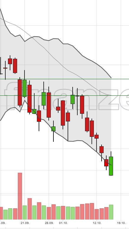 - Bollinger Band nach unten gekreuzt (i.d.R. erfolgt eine Erholung zur Bandmitte)