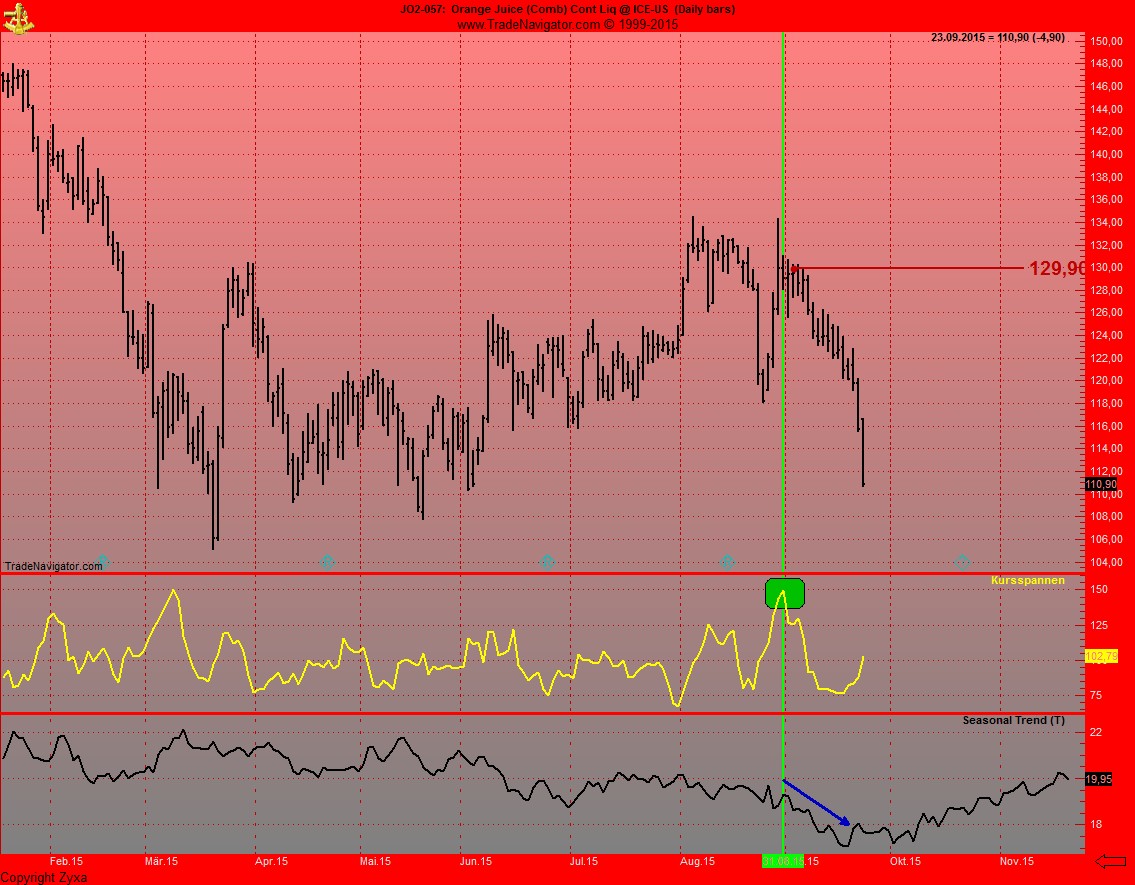 Als Einstiegswerkzeug hab ich meinen Kursspannenindikator benutzt.....ABER mann sieht, die Seasonalitaet beginnt sich fuer OSaft zu entwickeln.