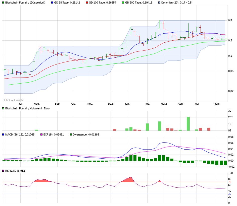 Vielleicht bremsen die Berichte, nach denen der Kryptomarkt sich nochmals halbieren könnte, bevor dort neue Hochs ausgebildet werden.