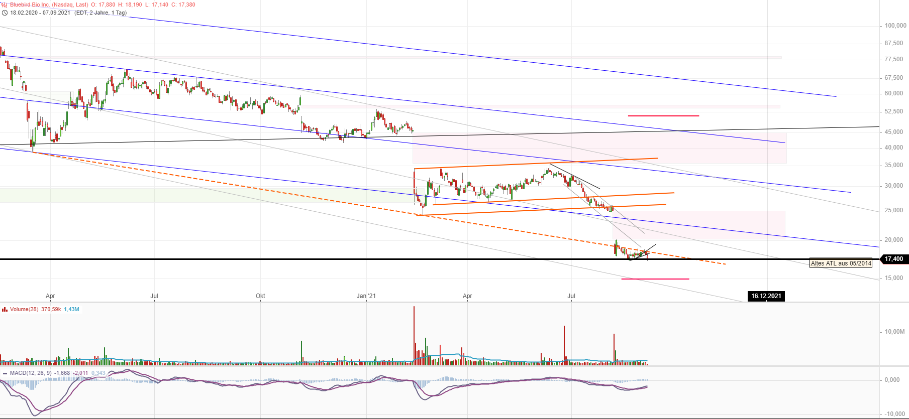 Mit solchen Aussagen wie: "tiefer kann es ja eigentlich kaum noch gehen" wäre ich immer vorsichtig. bluebird Bio hat der Erwartungen der Analysten für Q2/21 klar verfehlt