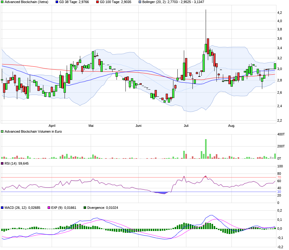 Die Analysten bestätigen die Kaufempfehlung für die Aktien von Advanced Blockchain. Das Kursziel für den Titel sehen sie unverändert bei 11,00 Euro.