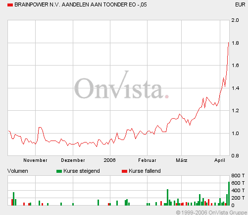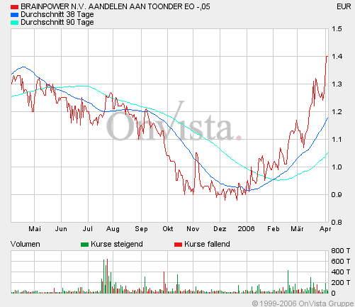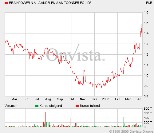 Brainpower N.V. (Deutsche Börse, Prime Standard: BPW), Anbieter von analytischen Applikationen, Technologie und Datenmanagementlösungen für das Investment Management gibt die Ergebnisse für das am 31. Dezember abgelaufene vierte Quartal und das Gesamtjahr 2005 bekannt. Der Umsatz im vierten Quartal betrug Euro 2,02 Mio und lag damit um 18 Prozent über dem Vorjahresquartal und um 42 Prozent über dem dritten Quartal 2005. Im Gesamtjahr 2005 erreichte der Umsatz Euro 6,99 Mio, eine Steigerung von 10 Prozent gegenüber dem Vorjahr. Die operativen Kosten lagen im Berichtsquartal mit Euro 1,6 Mio auf Höhe des Vorjahresniveaus. Das EBITDA vor Restrukturierungskosten betrug für das vierte Quartal Euro 109.321 nach einem Verlust von Euro 323.489 im dritten Quartal 2005. Für das Gesamtjahr 2005 wurde ein negatives EBITDA vor Restrukturierungskosten von Euro 312.973 verzeichnet gegenüber einem negativen EBITDA von Euro 1.462.758 Mio im Jahr 2004. Die Umsatzsteigerung sowie die Verbesserung beim EBITDA sowohl im vierten Quartal als auch im Gesamtjahr 2005 belegen den Fortschritt des Unternehmens bei der Erreichung des angekündigten finanziellen Turnaround.