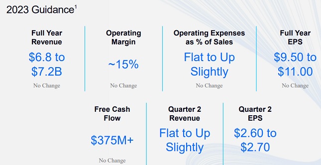 Für das laufende Geschäftsjahr geht der Konzern von einem EPS-Ergebnis von 3,25 bis 3,45 Dollar und einem Umsatzplus von 6 bis 8 Prozent auf 6,28 bis 6,39 Mrd. Dollar aus. Die Marktschätzungen sehen hier einen Gewinn von 3,88 Dollar pro Aktie und Erlöse von 6,28 Mrd. Dollar vor.