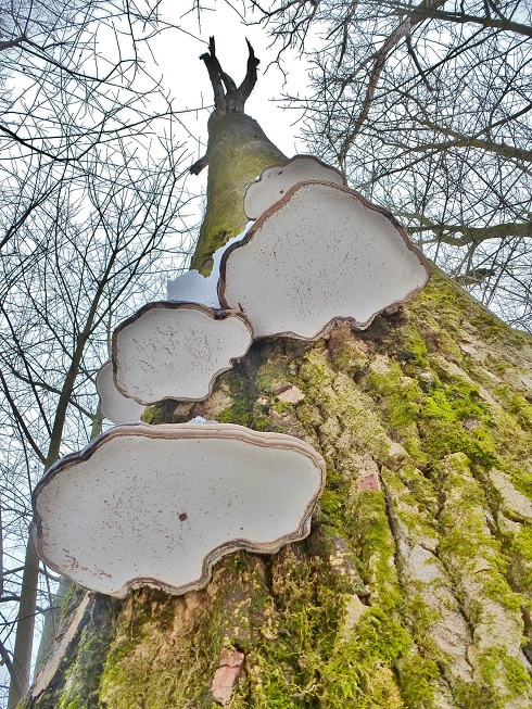 "Flache Lackporlinge" an gewaltiger Pappel.