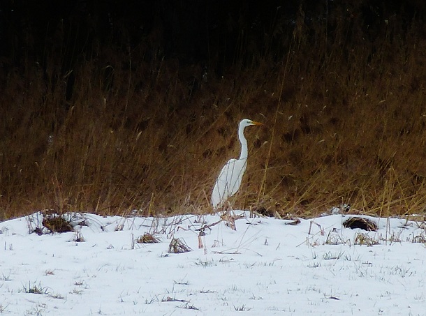 des Hintergrundes an, um das Weiß des Schreitvogels besser
