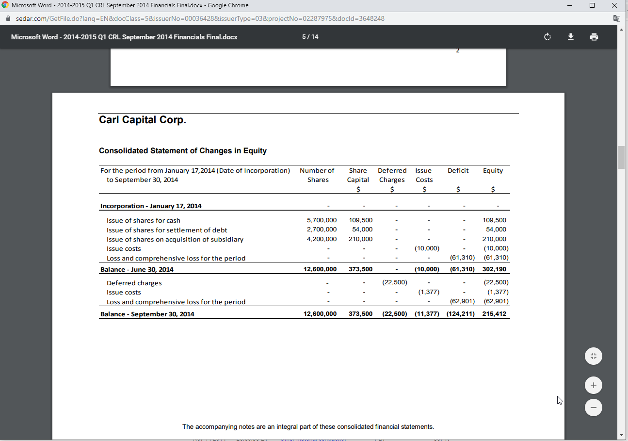 Da sammelt man im Jahre 2014 per IPO 500,000 CAD für 5 Millionen Aktien ein.