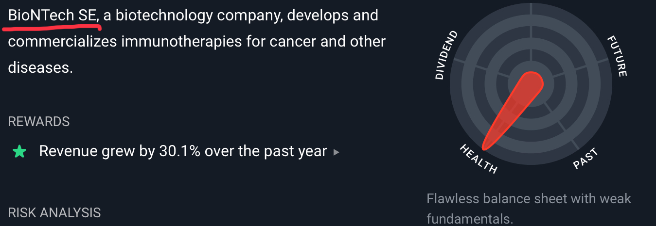 Wenn wir uns die Analyse der Firma ansehen, sehen wir das die Firma in den Bereichen Value, Future, Past, Health und Dividend sehr, sehr schlechte Werte hat.