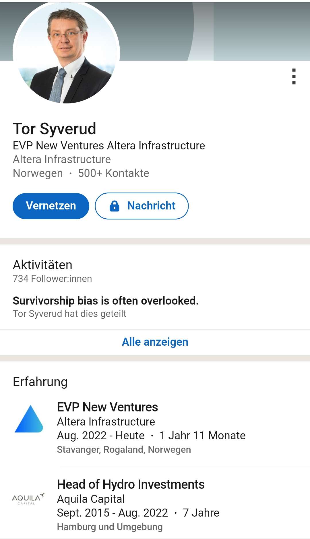 war bis 2022 Head of Hydro Investments bei Aquila Capital in Hamburg, die erst vor zwei Tagen mehrheitlich von der Commerzbank übernommen wurden.