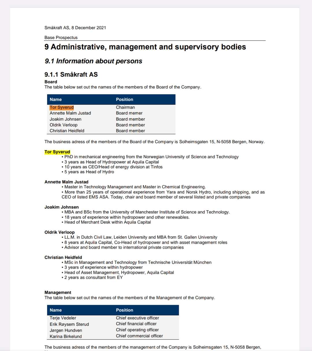 Aktuell scheinbar ohne Ämter, die einer Vorstandsbestellung entgegen stehen würden und absoluter Kenner der Investments in Wasserkraft. Sollte die Einbringung der Smakraft AS umgesetzt werden, wäre er mein Mann für einen Vorstandsposten der DWK Deutsche Wasserkraft AG.