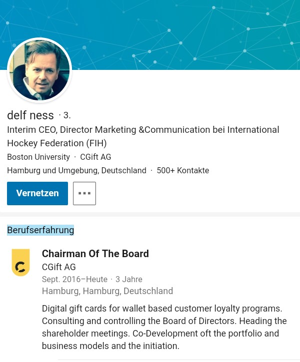 War der AR-Posten bislang nur sehr "versteckt" sichtbar, ist dieser nun prominent im Profil dargestellt. Zudem hat er neben den üblichen AR-Taetigkeiten abgabegemäß selbst auch operativ mitgearbeitet, um das neue Geschäftsmodell auf die Rampe zu schieben: