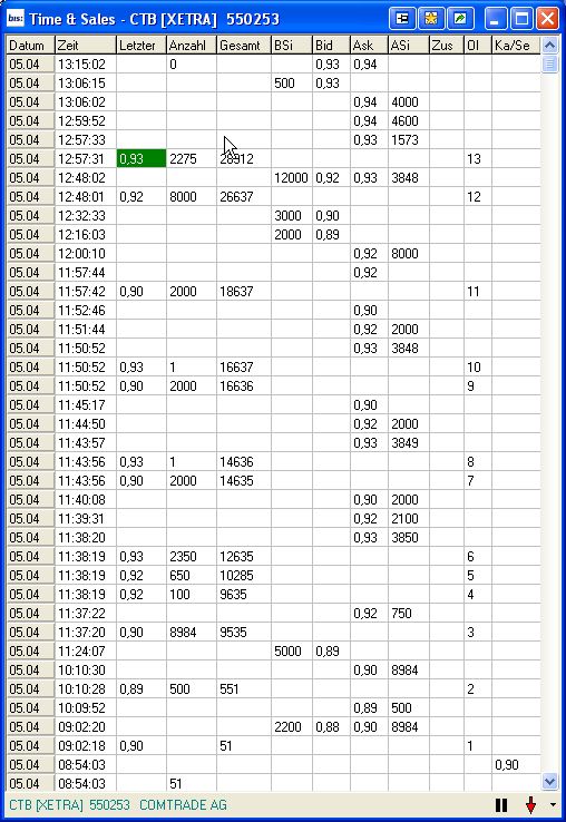 wieder 0,90 auf Xetra der Kurs wird aus meiner Sicht von einem größeren Investor (Homm) gesteuert.­ Im Moment sieht es so aus, als ob er ihn zw. 0,88 und 0,93 halten will. Wie es scheint kann er trotzdem gute Stückzahle­n dabei abstoßen. Wenn die prognostiz­ierten Zahlen von der CEO eingehalte­n werden, sollte der Kurs eigentlich­ explodiere­n. Spätestens­ Ende d.Monats ist es soweit.