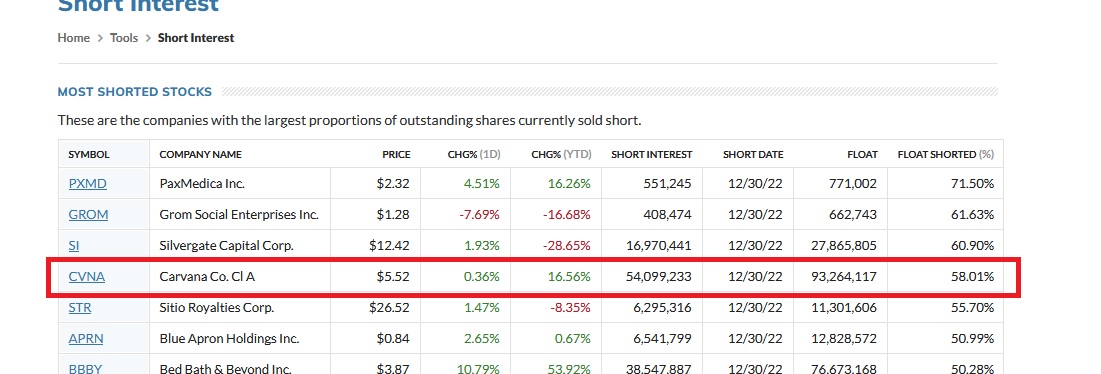 Carvana hat eine aktuelle Mcap von ca. 450 Millionen