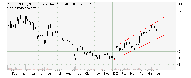 Die conVISUAL AG (ISIN/WKN: 0006204589), Full Service Anbieter für mobile und sprach-basierte Mehrwertdienste aus Oberhausen, konnte im Jahr 2006 ihr Geschäft deutlich ausweiten. Der Umsatz stieg um rund 21 % auf 11,6 Mio. Euro (Vorjahr 9,6 Mio. Euro). Der Jahresfehlbetrag belief sich hierbei in 2006 auf 3,7 Mio. Euro (Vorjahr 0,2 Mio. Euro) und war in erheblichem Umfang von außerordentlichem und einmaligem Aufwand geprägt. Der Börsengang im Januar 2006, die Erstellung eines Wertpapierprospektes im zweiten Halbjahr und weitere Sondereffekte, wie die Rückzahlungen von Gesellschafterdarlehen im Rahmen wieder aufgelebter Forderungen und die Investitionen für den Aufbau des US-Geschäftes wirkten sich auf das Ergebnis aus. Der um diese Sondereffekte bereinigte Jahresfehlbetrag belief sich in 2006 auf 1,27 Mio. Euro.