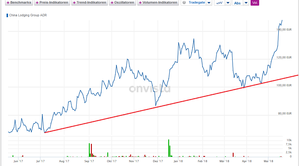 ich bin vor einigen Monaten durch eine Börsenzeitschrift auf China Lodging aufmerksam geworden und finde den Wert nach wie vor spannend. Grundsätzlich boomt die Reisebranche ja, China Lodging ist m.E. einer der Profiteure. Man fokussiert sich auf das mittelpreisige Hotelsegment, Ziel sind 10.000 Einheiten in den kommenden Jahren. Positiv wirkt sich der fragmentierte Markt aus, da 77% der Hotels keiner Marke angehören.