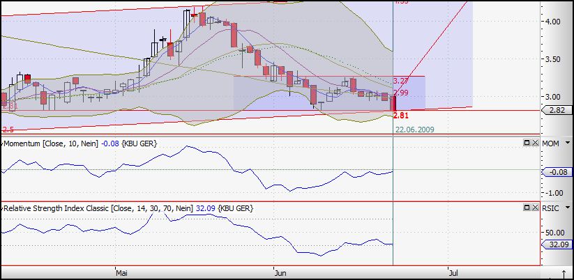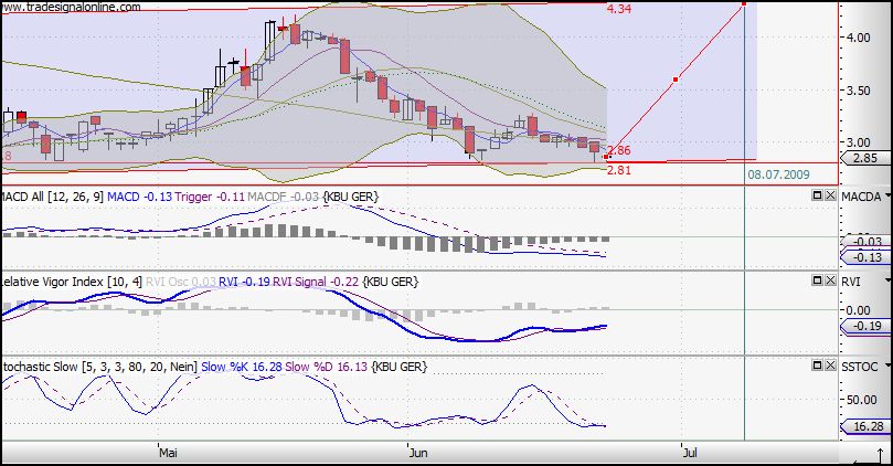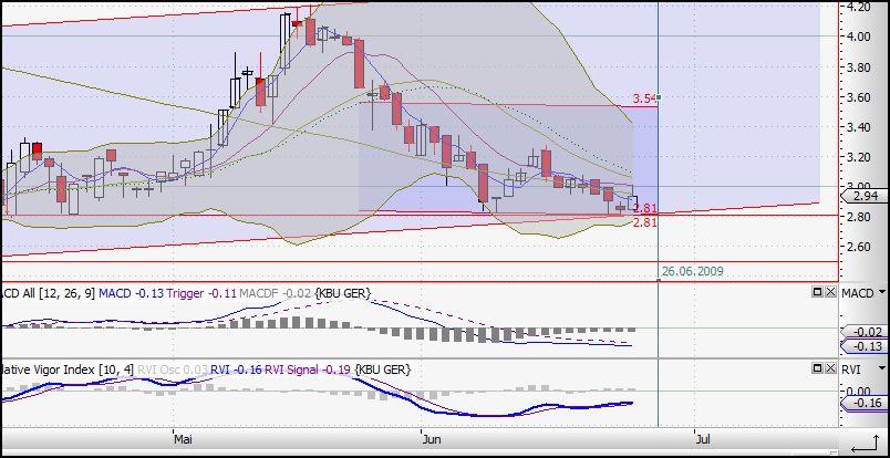 ich gehe davon aus, dass bei 2,81 der nächste Widerstand ist der hoffentlich halten dürfte. Ich traue den Burschen zu, dass sie morgen noch mal nen Test fahren. Der nächst grössere Widerstand liegt bei 2,50 EUR, aber ich glaube das wird der Markt nicht zulassen, da dann das Bollingerband extremst verlassen werden müßte, was dann am nächsten Tag zu einer Neutralisierung (Wiederrückgängigmachung) führen dürfte.