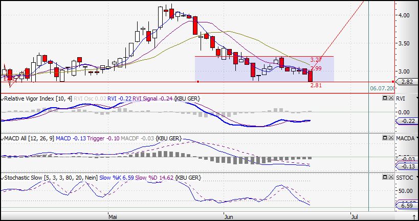 sagt. Ich denke ab morgen wirds (hoffentlich besser. Der RVI zeigt einen leichten Aufwärtstrend an. Der MACD zeigt dass ein Ansteigen kurz bevorsteht. Stochastic slow bestätigt dies. Jetzt muss nur noch der Markt mitspielen.....